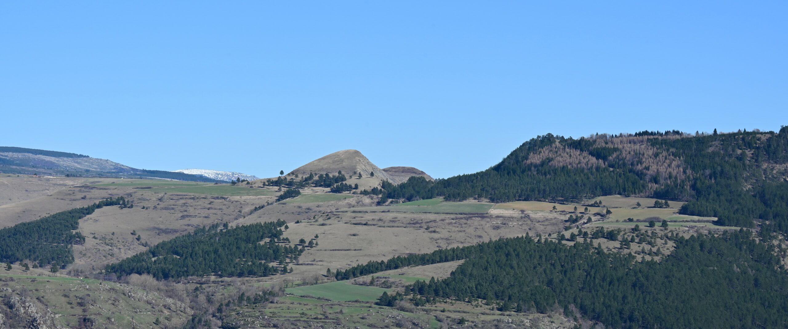 le village de Nozières, les Puechs des Bondons et le Mont Lozère