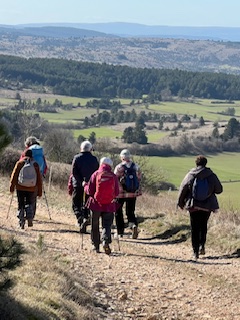 12 randonneurs ont refait la boucle de5,5 km sur le Causse de Sauveterre près du village de Montmirat.
